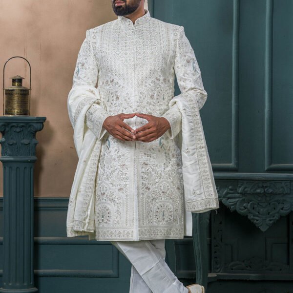 Embroidered Art Silk Sherwani in Off White Original price was: ₹32,500.00.Current price is: ₹29,250.00.