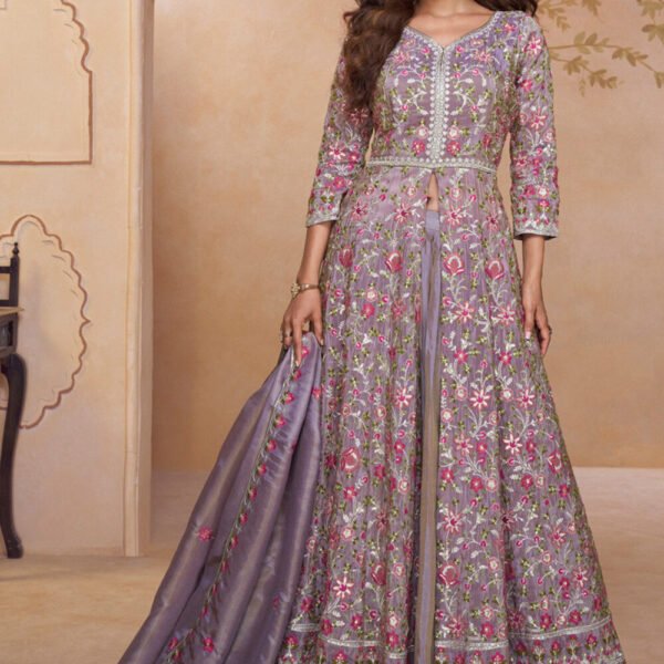 Blue Embroidered Shimmer Silk Lehenga Kameez