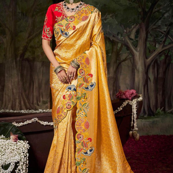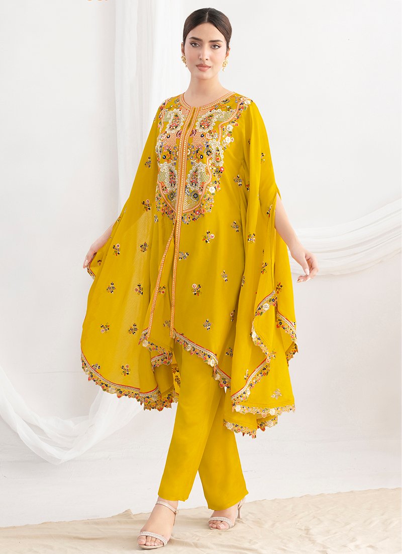 Chinnon Mustard Festival Wear Emroidery Work Readymade Kaftan