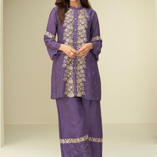 Chinnon Silk Mauve Daily Wear Embroidery Work Readymade Cord Set