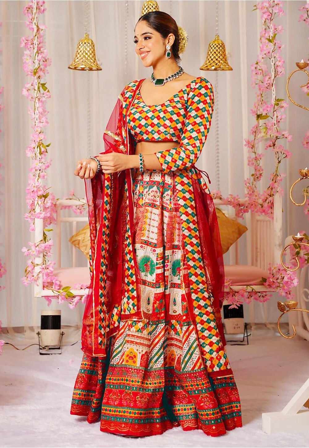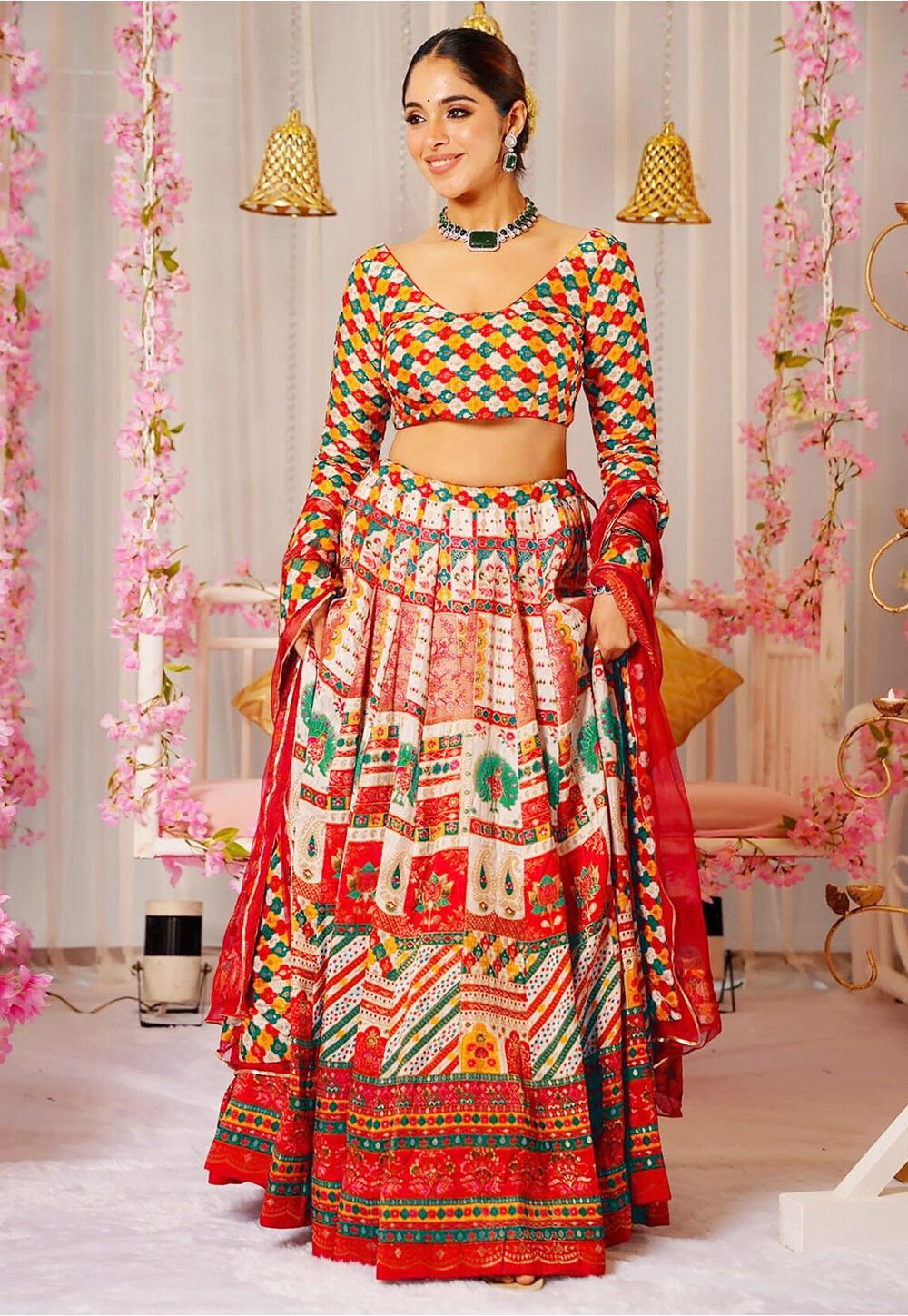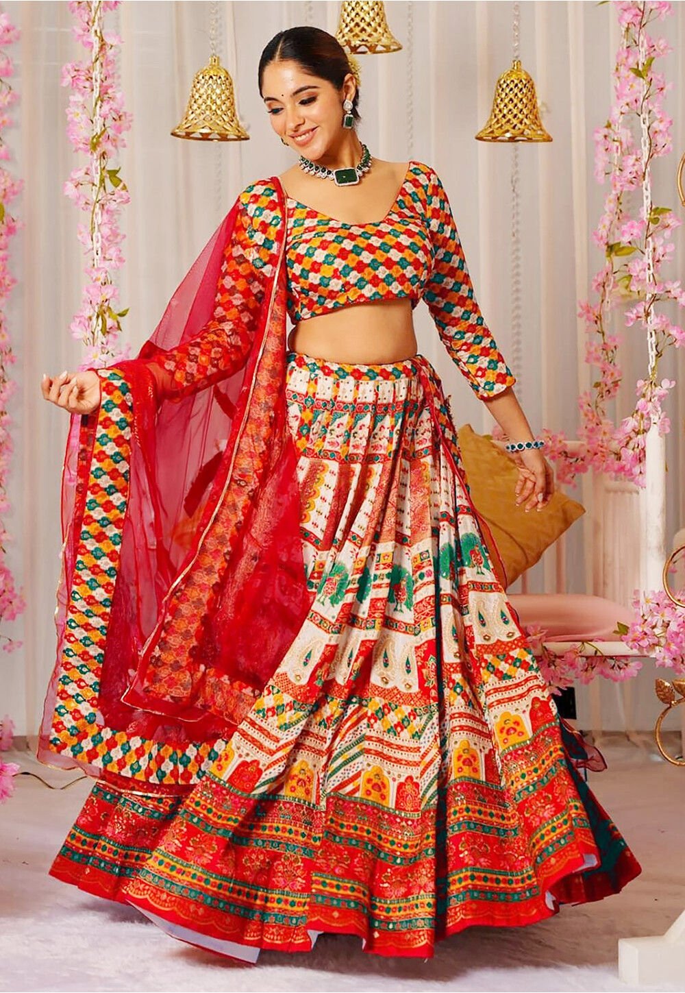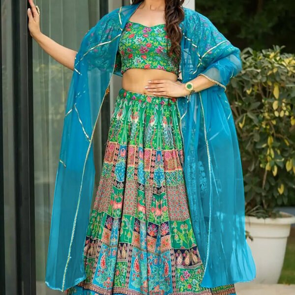 - Multicolor lehenga choli with dupatta.