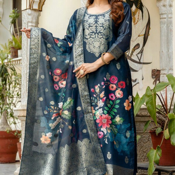 Digital Printed Chanderi Cotton Jacquard Pakistani Suit in Dusty Green