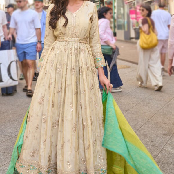 - Art Silk Abaya Style Kameez in Yellow Ombre