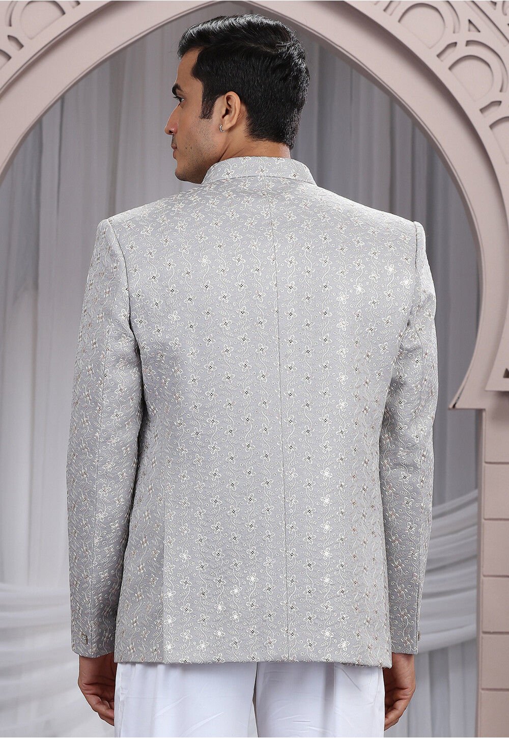 Embroidered Art Silk Jodhpuri Jacket in Light Grey