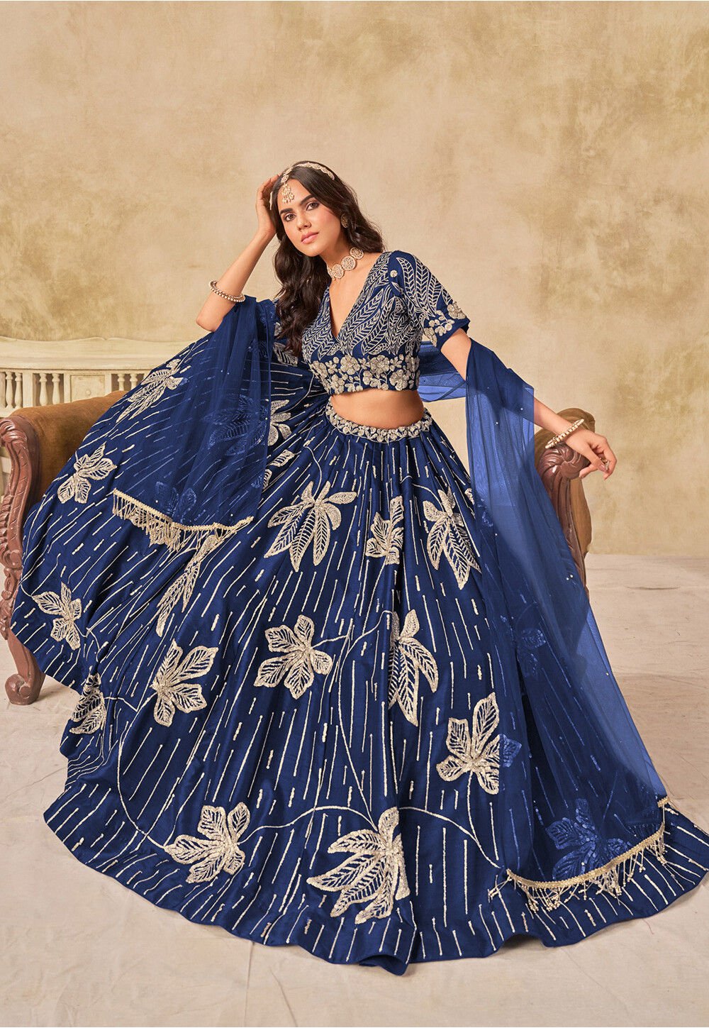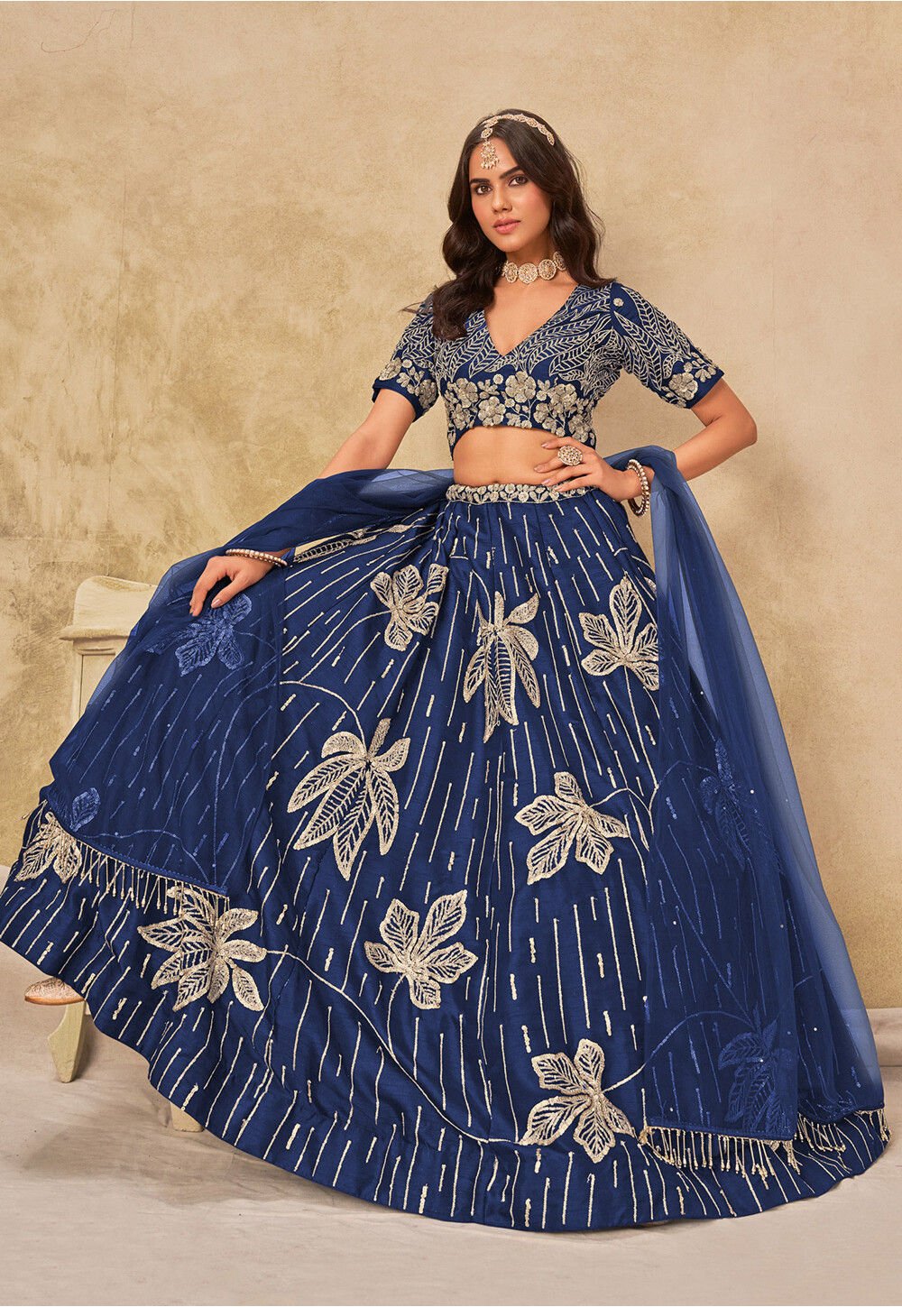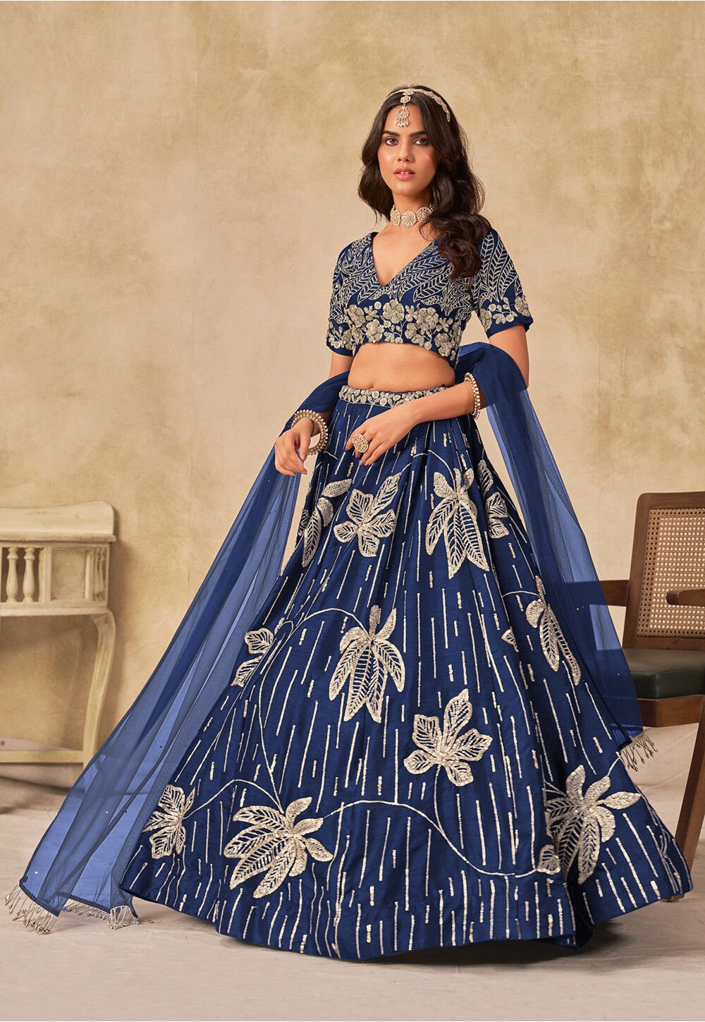 - Art Silk Lehenga in Navy Blue