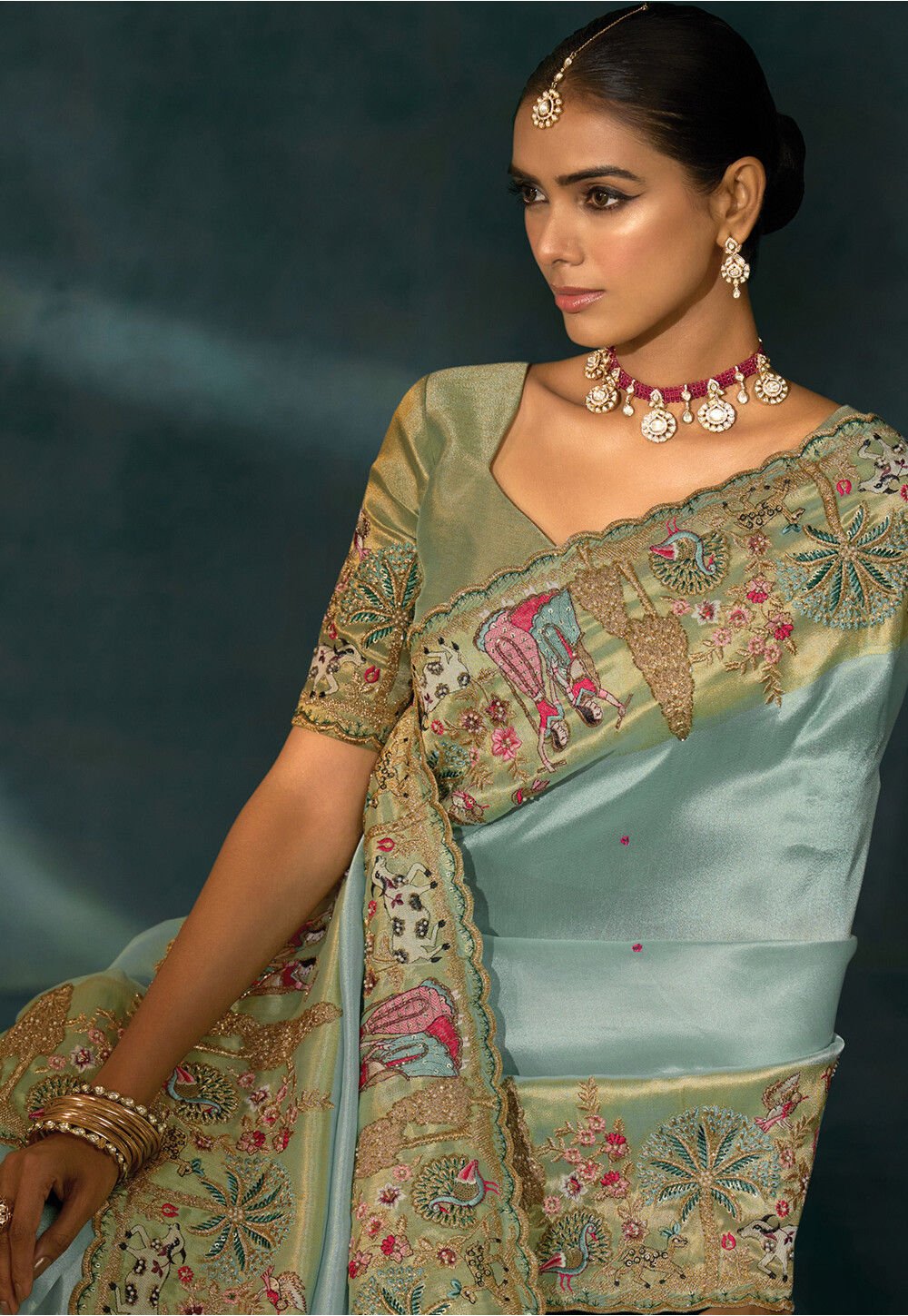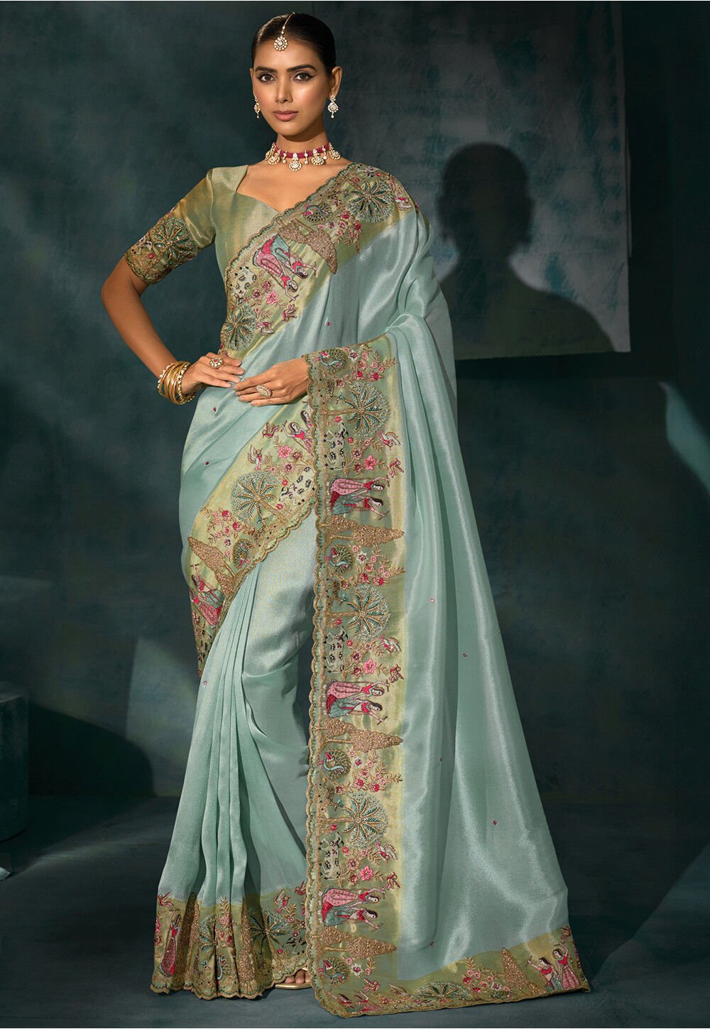 - Work – Zari, thread, cutdana, mirror and moti.