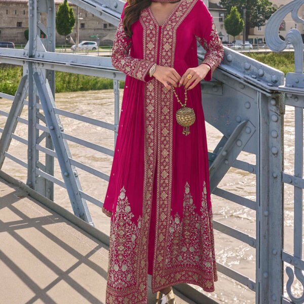- Available with an Art Chinon Silk Palazzo and an Art Chinon Silk Dupatta in Dark Green