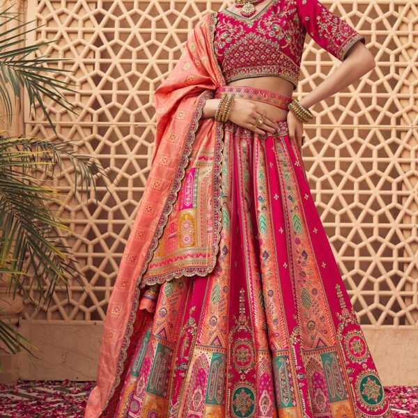 Rani Pink and Peach Banarasi Silk Bridal Lehenga Choli Original price was: ₹20,500.00.Current price is: ₹18,450.00.