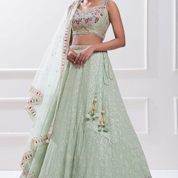 Be the first to review “Embroidered Georgette Lehenga in Green”