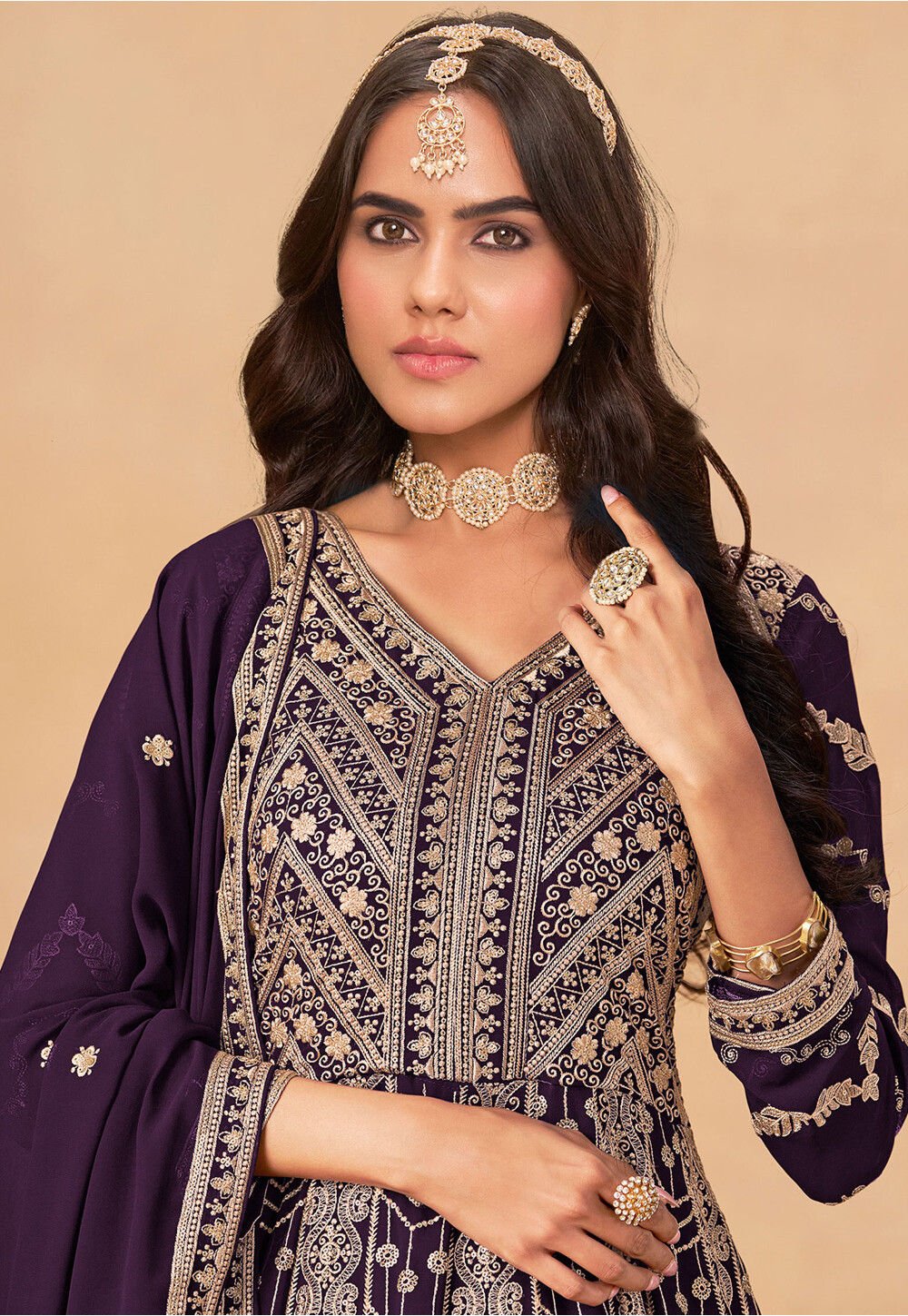- Available with a (Elastine) Leggings and a Georgette Silk Dupatta in Wine