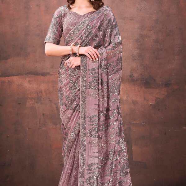 Embroidered Net Saree in Purple Original price was: ₹10,500.00.Current price is: ₹9,450.00.