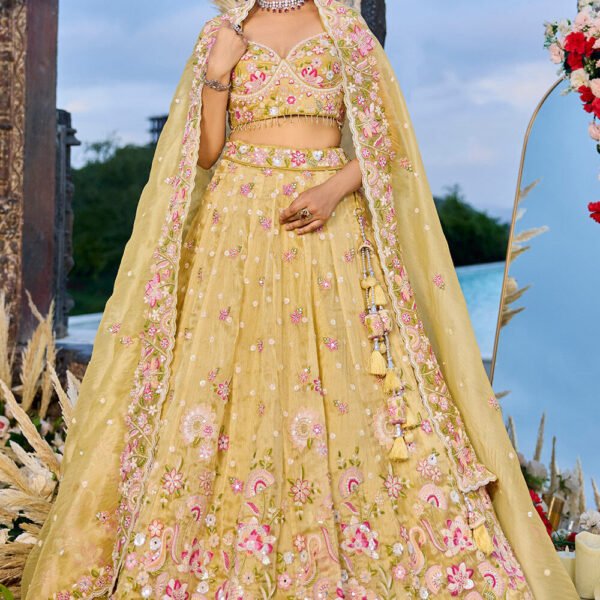 - Fabric – Lehenga : Satin silk ; Choli : Satin silk ; Dupatta : Net.
