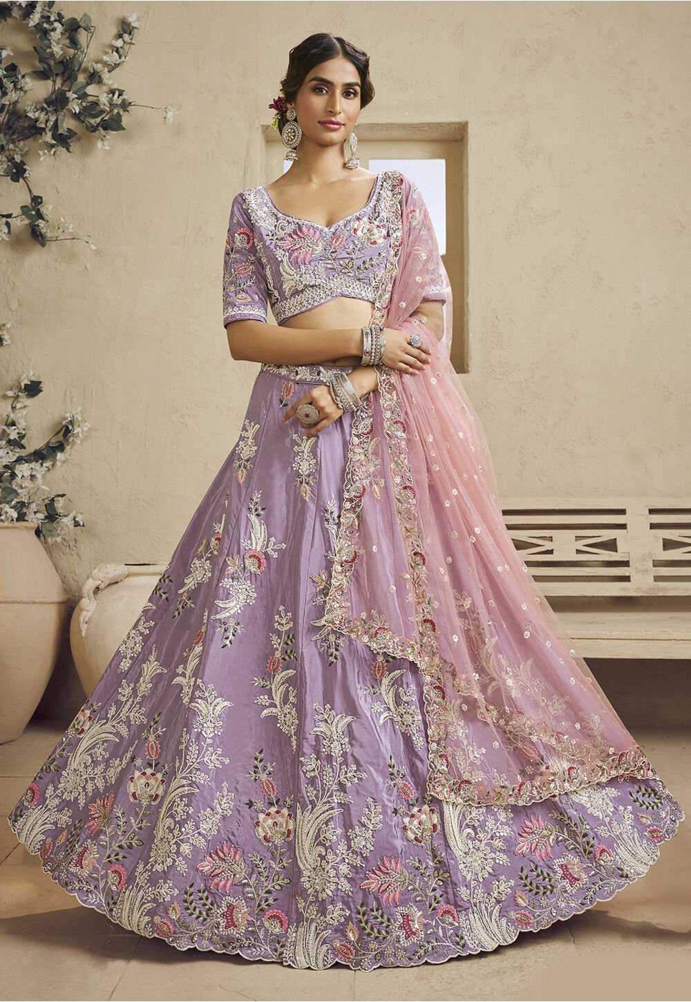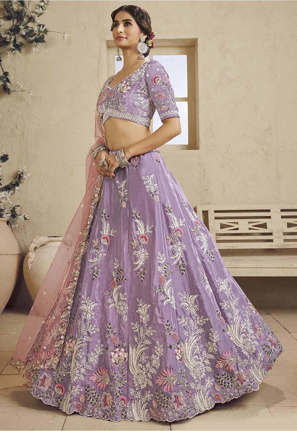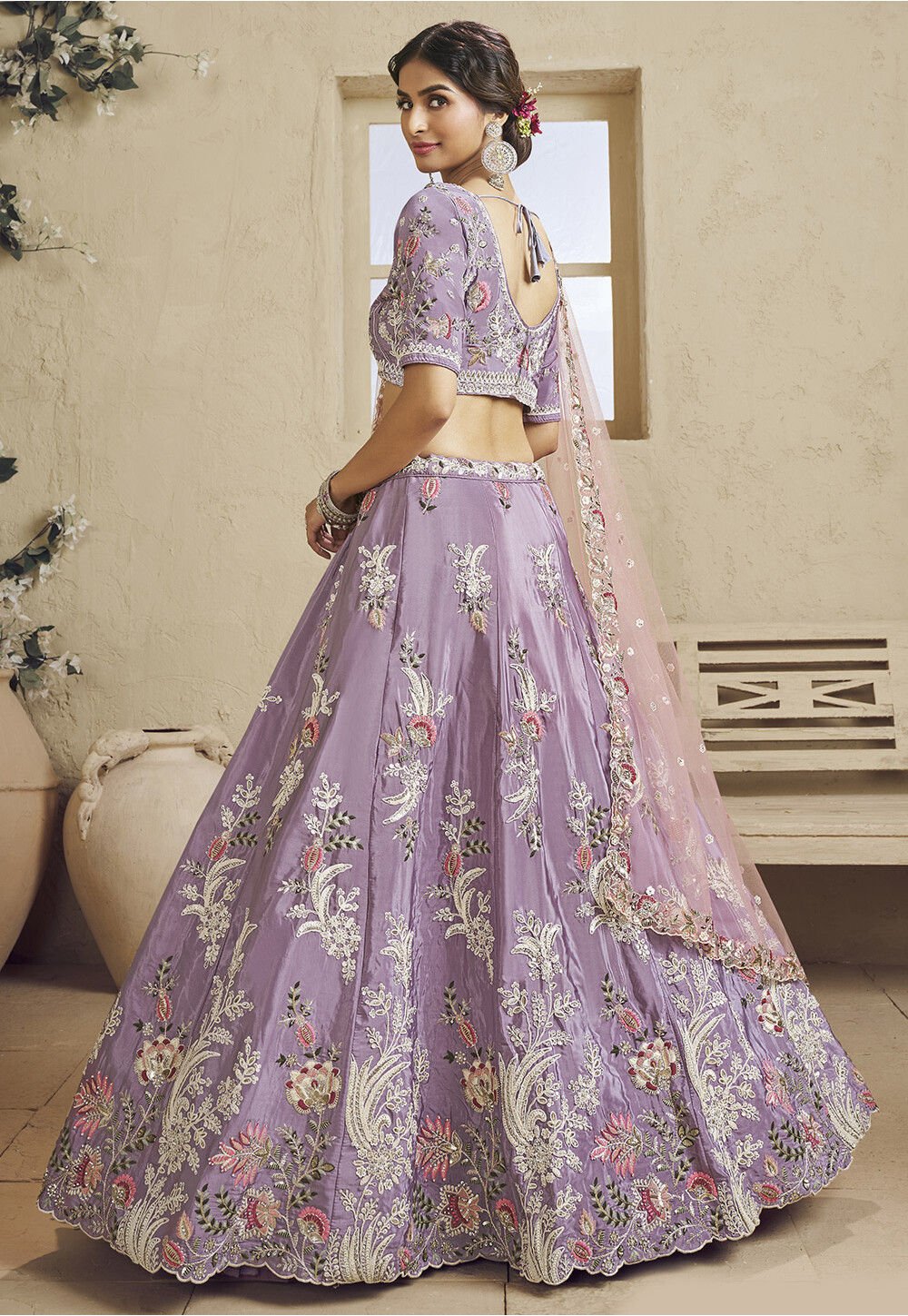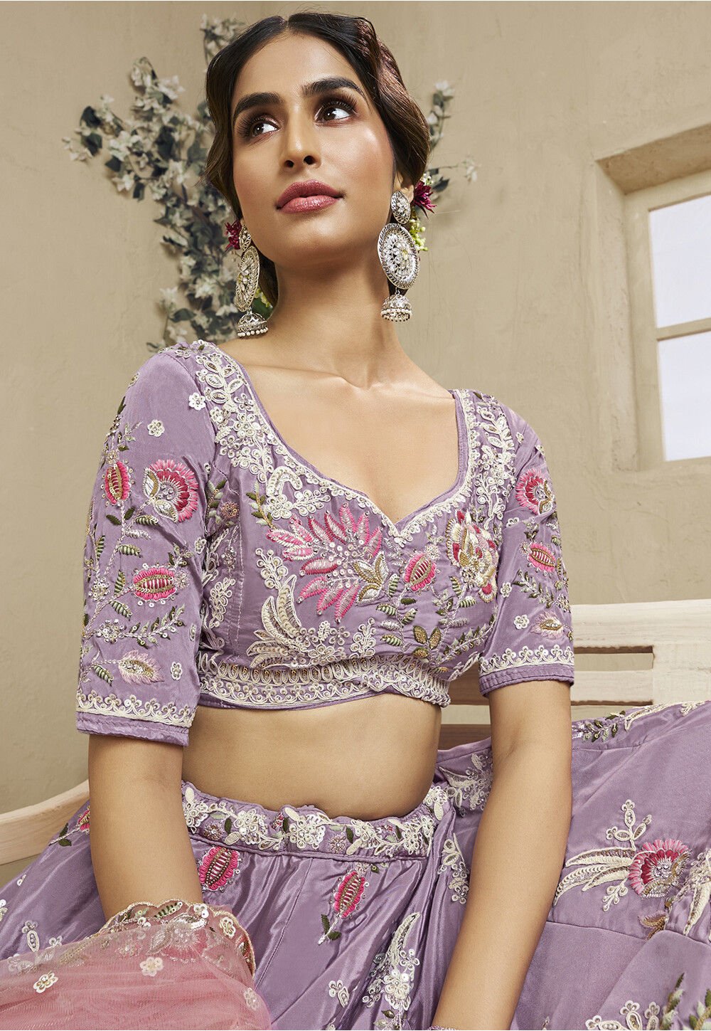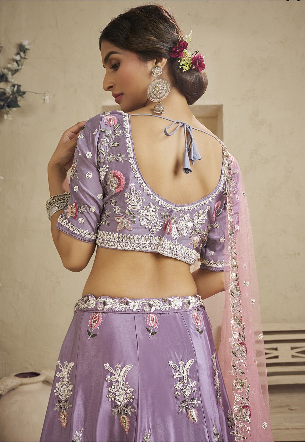Be the first to review “Embroidered Satin Silk Lehenga in Light Purple”