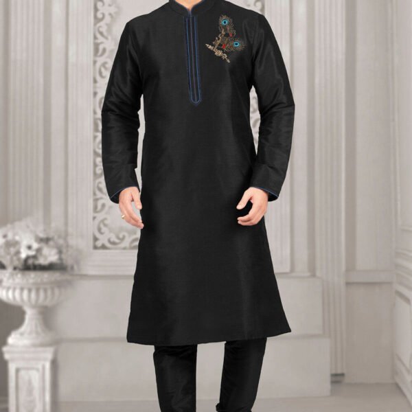 Embroidered Dupion Silk Kurta Set in Black Original price was: ₹3,500.00.Current price is: ₹3,150.00.