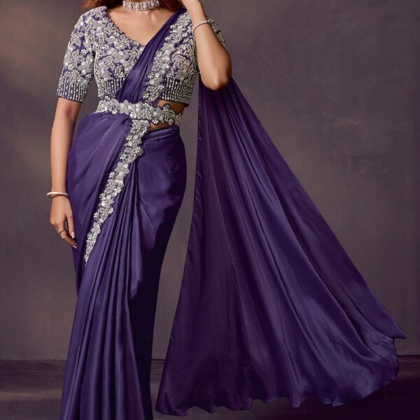 - Art Satin Silk Scalloped Saree in Purple