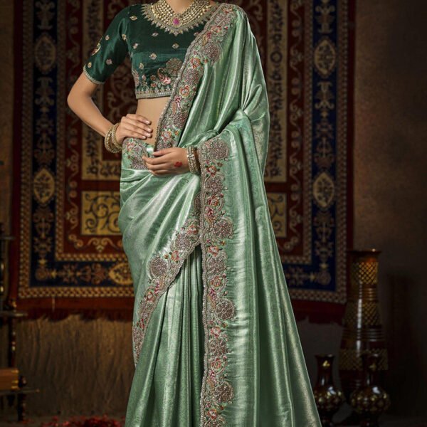 Be the first to review “Mint Green Embroidered Silk Designer Saree”