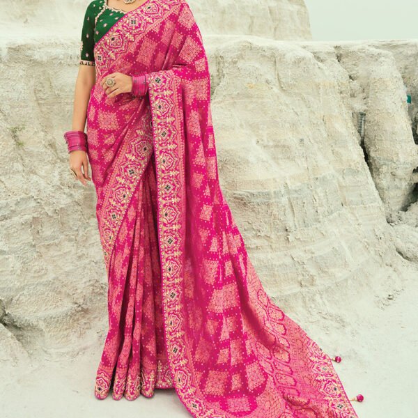 Rani Pink Pure Georgette Bandhej Designer Saree Original price was: ₹10,500.00.Current price is: ₹9,450.00.