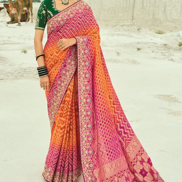 Orange and Rani Pink Pure Georgette Bandhej Designer Saree Original price was: ₹10,500.00.Current price is: ₹9,450.00.