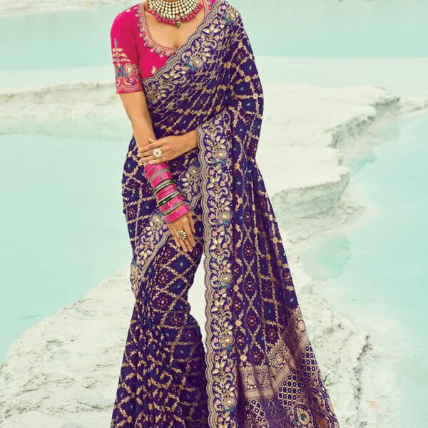 • Fabric – Saree : Pure georgette bandhej ; Blouse : Silk.