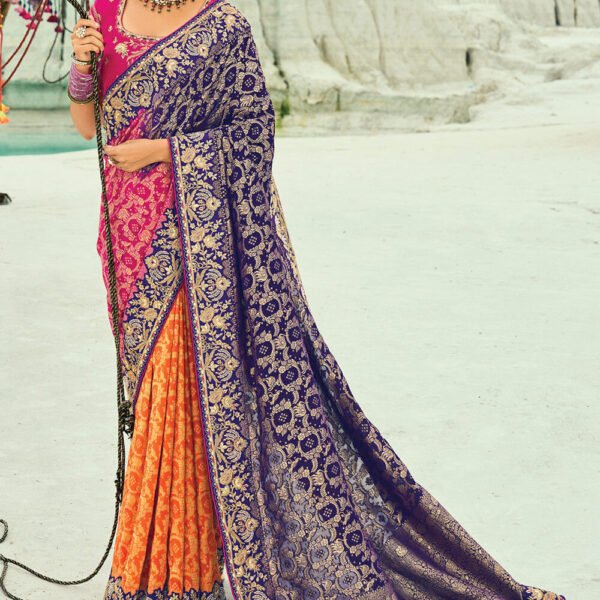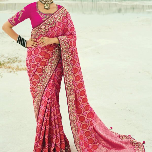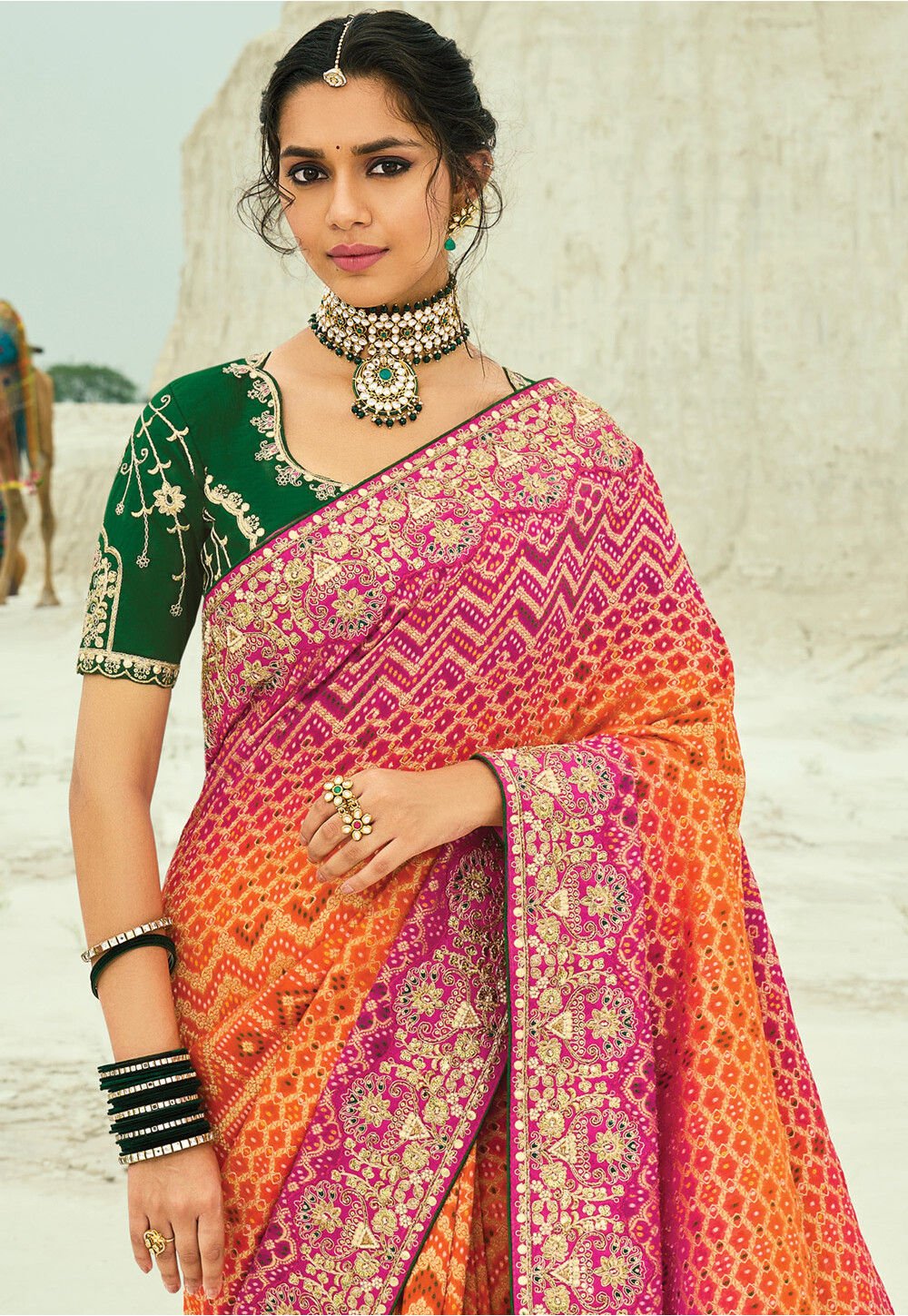 Orange and Rani Pink Pure Georgette Bandhej Designer Saree