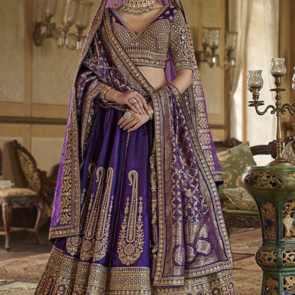 • Fabric – Lehenga : Banarasi silk ; Choli : Art silk ; Dupatta : Banarasi silk.