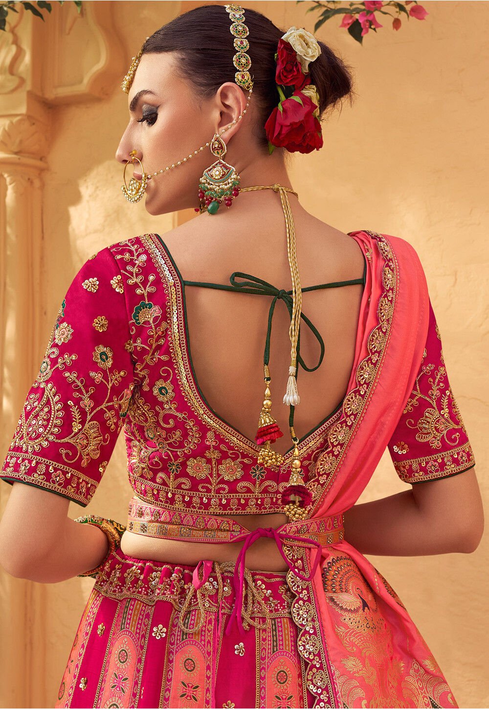 Rani Pink and Cherry Pink Banarasi Silk Bridal Lehenga Choli