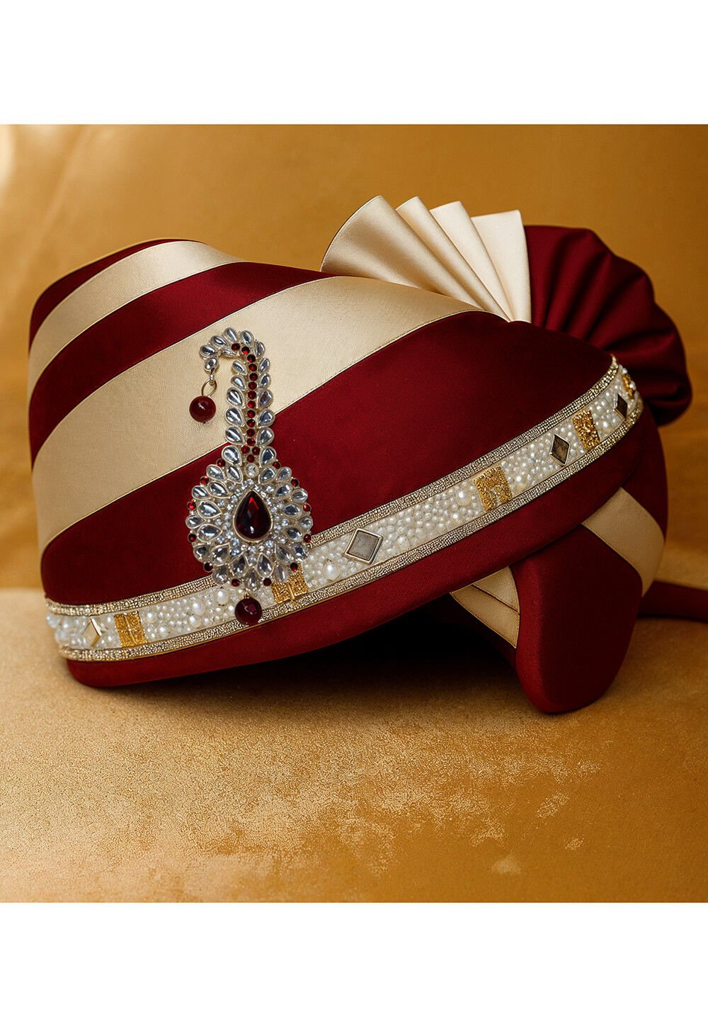 •  Turban in Maroon and Beige