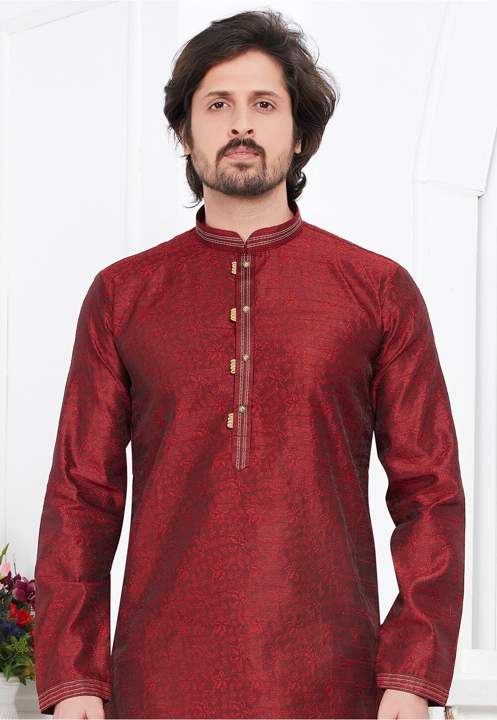 • Art Silk Jacquard Kurta in Maroon