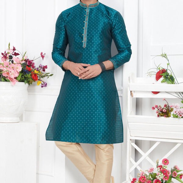 Woven Art Silk Jacquard Kurta Set in Teal Blue Original price was: ₹2,389.00.Current price is: ₹2,150.00.
