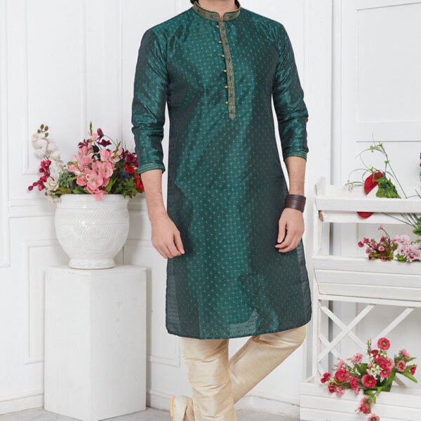 Woven Art Silk Jacquard Kurta Set in Mustrad