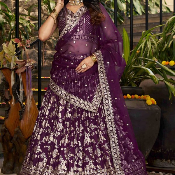 - Fabric – Lehenga : Dola silk jacquard ; Choli : Dola silk jacquard ; Dupatta : Organza.